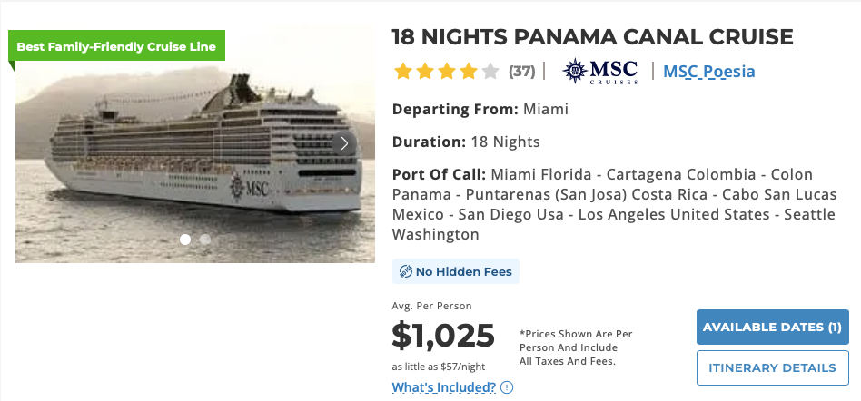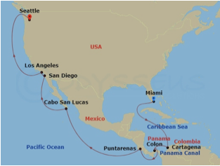 Port Of Call: Miami Florida – Cartagena Colombia – Colon Panama – Puntarenas (San Josa) Costa Rica – Cabo San Lucas Mexico – San Diego Usa – Los Angeles United States – Seattle Washington
